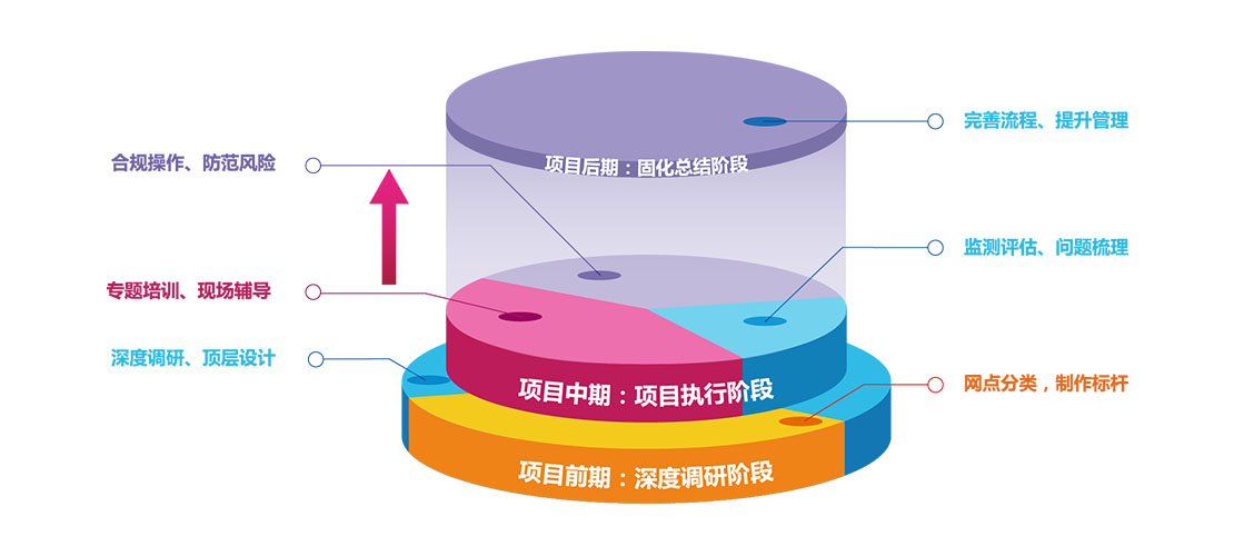 - 針對各個層面,進行分層培訓和宣導,配合網點現場輔導。