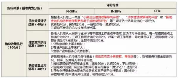 信貸政策執行情況考核分為3個指標,分別為信貸政策評估結果(40分)、信貸政策執行情況(30分)、央行資金運用情況(30分)。要達到多只能有一項指標扣10分。
