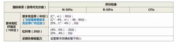 資本和杠桿情況分3個指標,分別為對資本充足率的考核、對杠桿率的考核和總損失吸收能力的考核,得分分別為80分、20分和0分。總損失吸收能力屬于巴塞爾IV研究的內容,所以在相關管理要求明確前,該指標暫不適用。