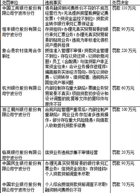 以下為寧波市銀監局5月10日公開的處罰決定匯總表: