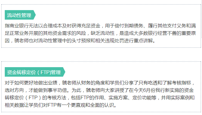 對于銀行新員工來說,熟悉財務制度和相關流程有利于我們更好地開展日常工作,更重要的是,可以通過這些財務信息更清晰得知曉銀行的業務發展和政策導向。因此邀請了金融機構培訓上海金程企業內訓師來和我們講授關于財務基本知識。